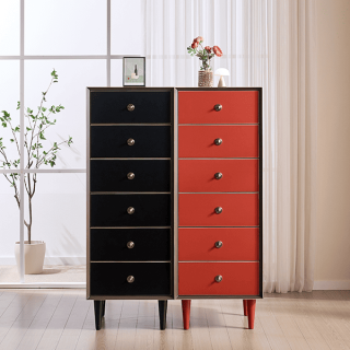 [헨지디자인] 플레르 6단 서랍장 SET 블랙+레드 []