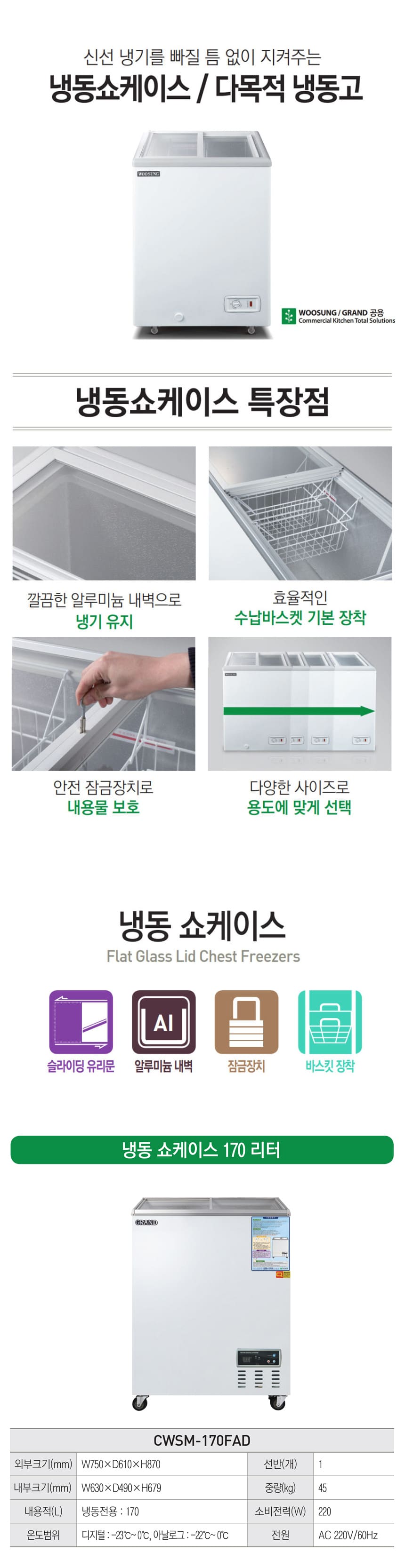 CWSM-170FAD 유버스 [그랜드우성] 냉동 쇼케이스 170L 제품분류 업소용 용량(총량) 100L이상 기능 뚜껑형 최저 렌탈가 월 34,300 (렌탈가) 제휴카드 할인가 월 (렌탈가) 3년 4년 5년 할인 제휴카드 보기 렌탈신청 장바구니